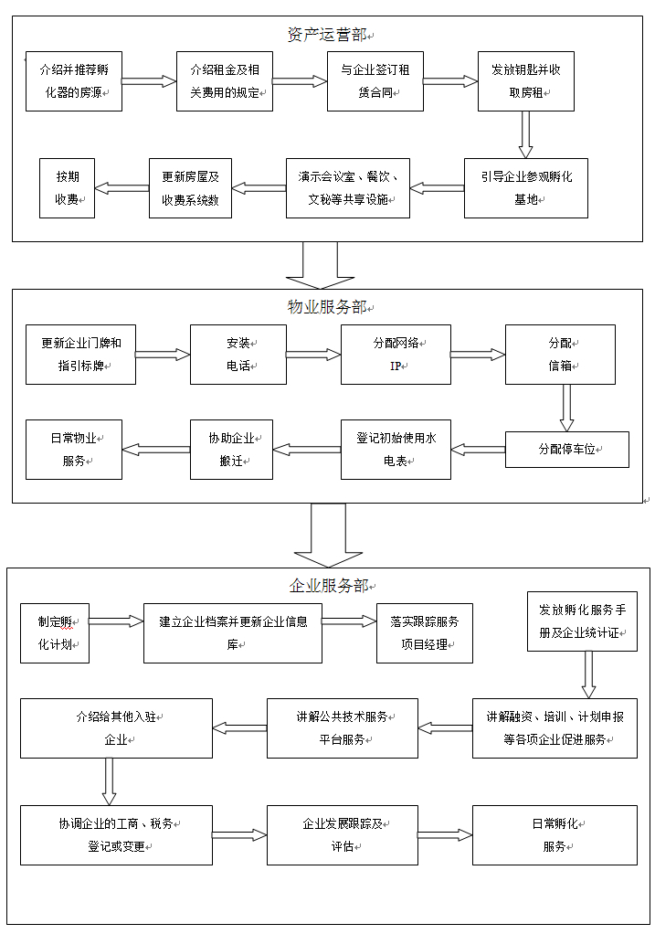 4. 毕业企业的跟踪服务,孵化器应继续跟踪服务3年,继续关注、指导企业发展,帮助毕业企业具备资源整合和抵抗风险的能力。