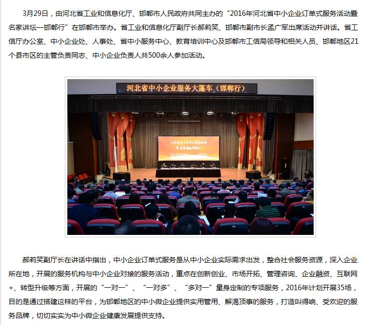 2016年河北省中小企业服务大篷车暨名家讲坛活动在邯郸市举办