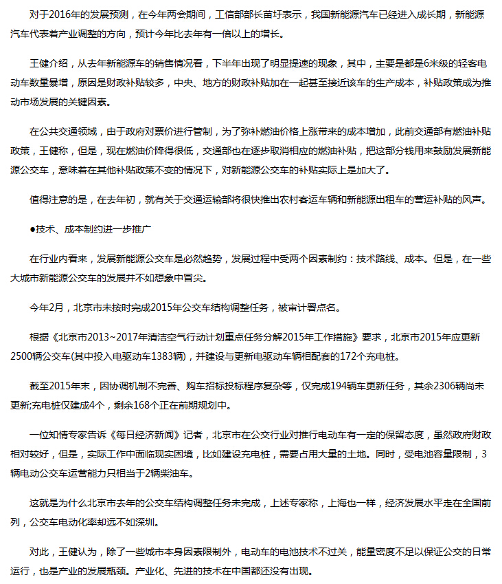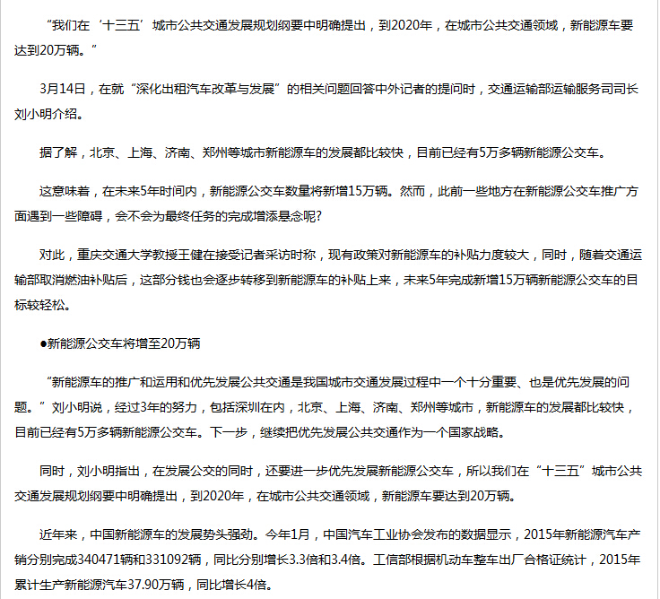 新能源公交车补贴进一步加码 5年内数量翻两番