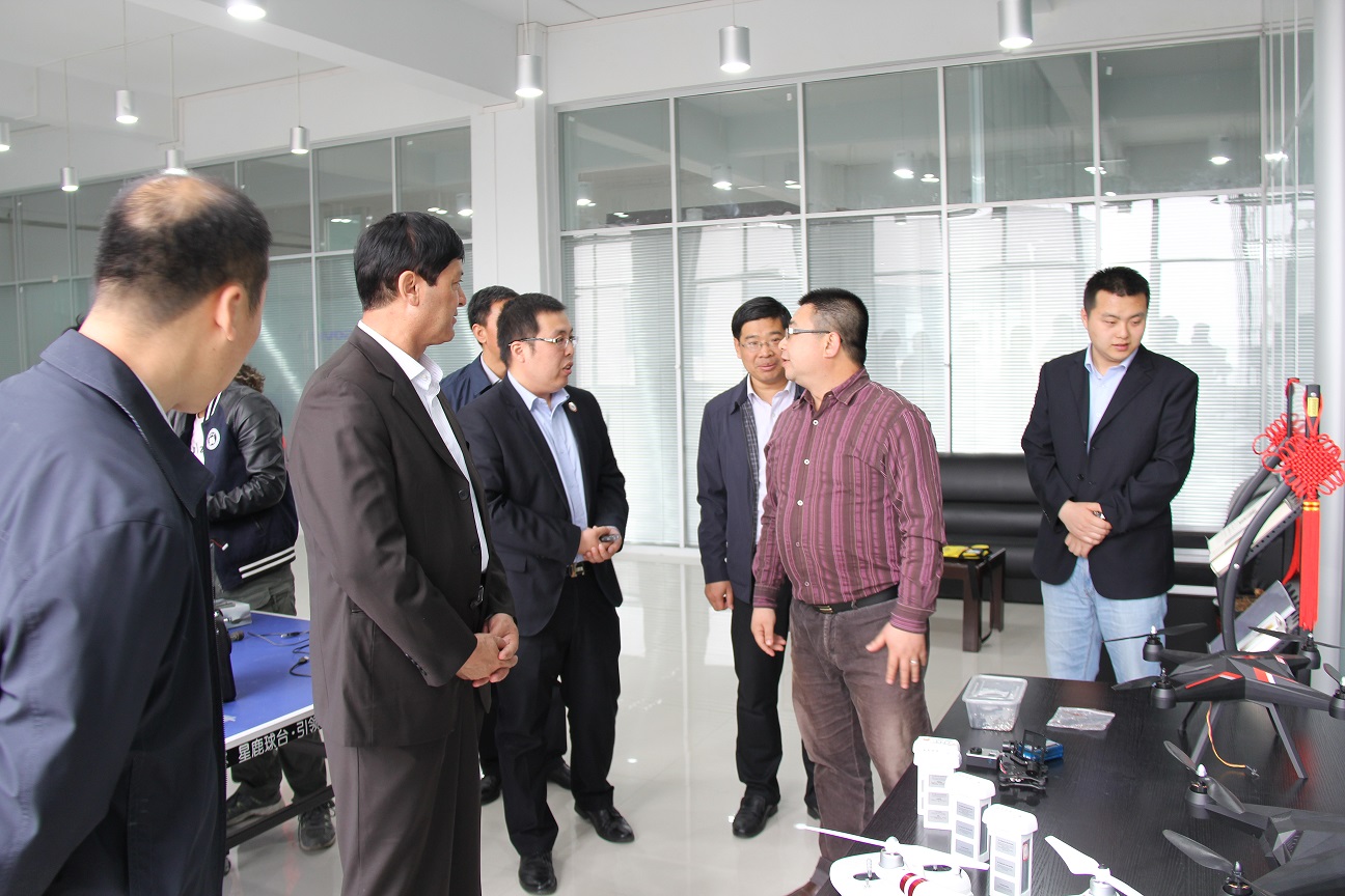 艾合买提.亚森局长一行首先参观了方亿创客园,听取了创客园入驻企业河北国呈电子总经理张庆峰的介绍,并观看无人机展示。