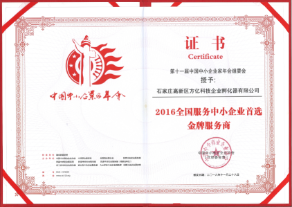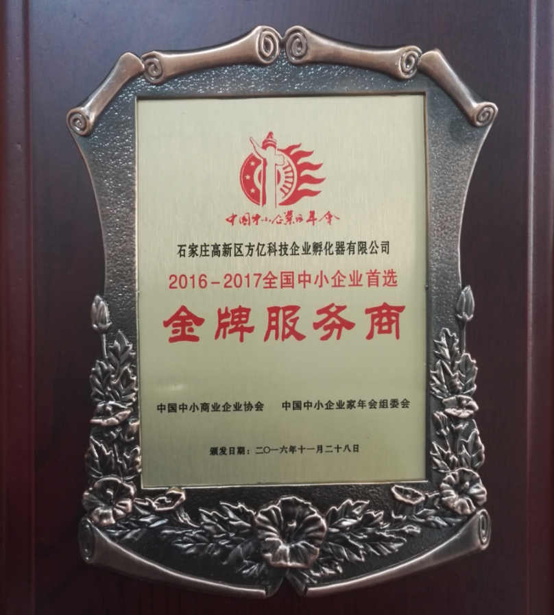 方亿科技园被评为-全国中小企业首选金牌服务商!